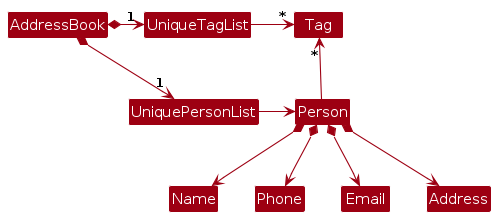 represents data entities of the domain, they should make sense on their own without depending on other components)Note: An alternative (arguably, a more OOP) model is given below. It has a Tag