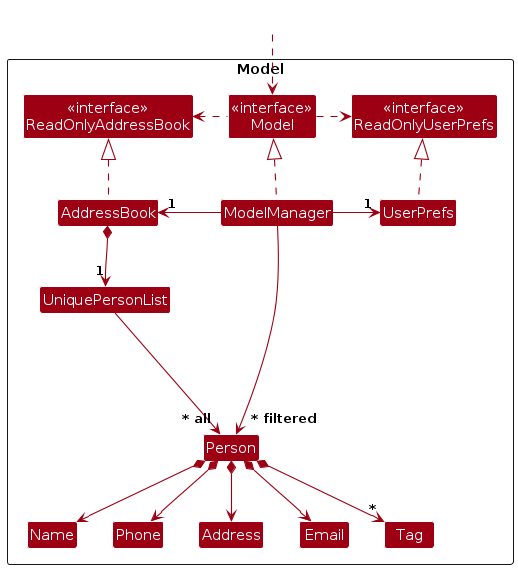 objects (e.g., results of a search query) as a separate filtered list which is exposed to outsiders as an unmodifiable ObservableList<Person>