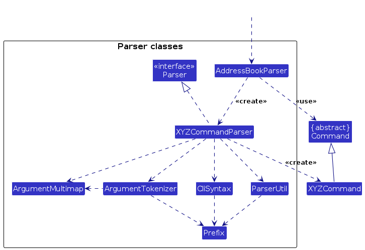 (omitted from the class diagram above) that are used for parsing a user command: